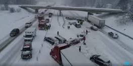 PAW PAW, MI -- A drone video shows more than 30 vehicles and semi trucks in the median along a snowy stretch of Interstate 94 between Mattawan and Paw Paw on New Year's Eve. Multiple pileups closed the westbound lanes of the highway in Van Buren County for several hours Sunday, Dec.